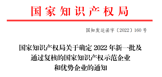 近日,国家知识产权局发布《国家知识产权局关于确定2022年新一批及通过复核的国家知识产权示范企业和优势企业的通知》,海南AG贵宾药业集团股份有限公司入选2022年新确定的国家知识产权示范企业名单,成为482家新一批国家知识产权示范企业之一。这标志着AG贵宾药业创新研发实力和知识产权管理成果进一步得到了国家有关部门认可。